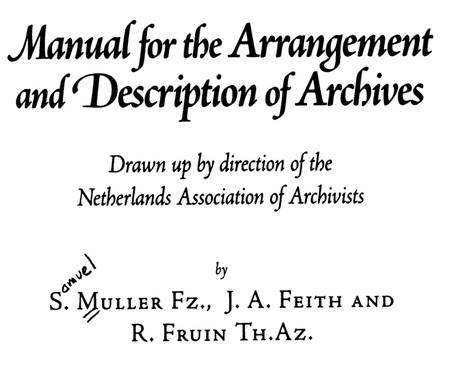 Muller, Feith & Fruin, Manual for the Arrangement and Description of Archives (1898/1905).